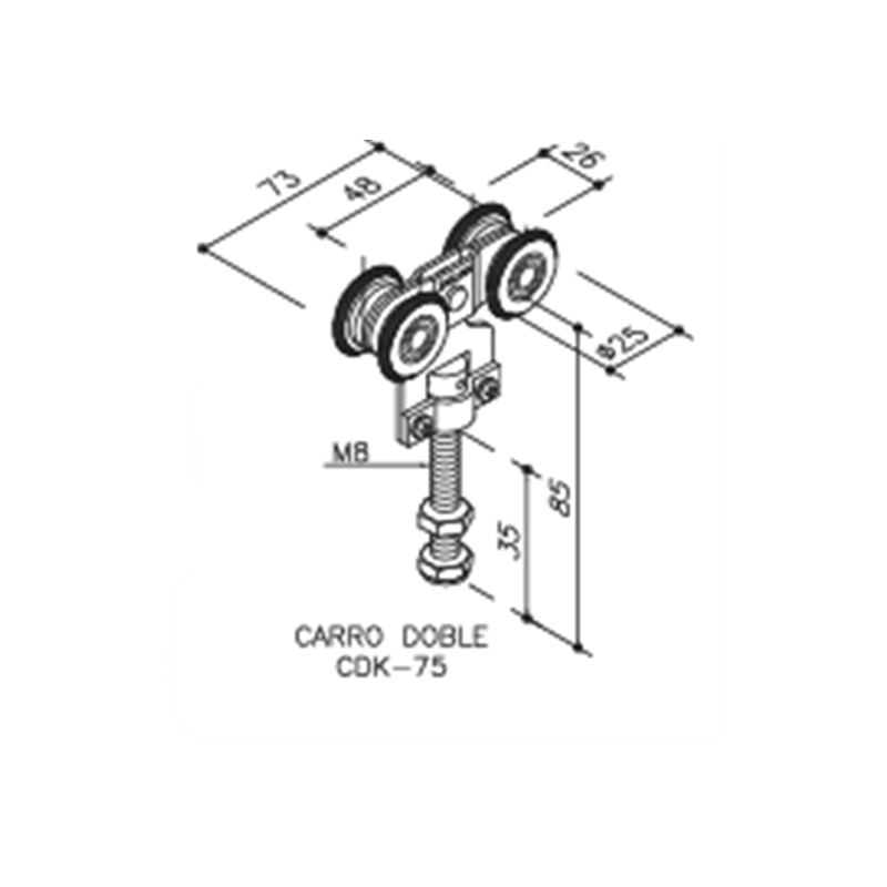 Carro doble para 75 Kg. el par Banda de rodadura en poliamida (enganche frontal)